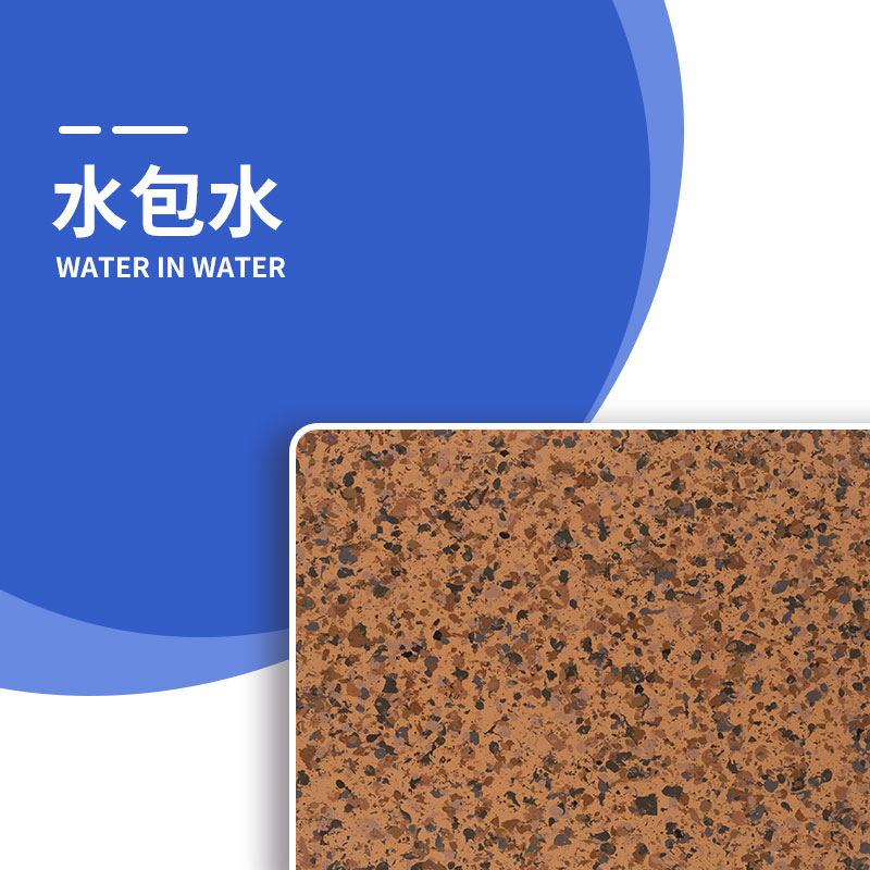 水包水多彩涂料,又稱液態(tài)石,是一種高性能水性環(huán)保涂料,專為建筑外墻裝飾設(shè)計。它以改性樹脂和穩(wěn)定性優(yōu)異的顏料為核心原料,通過全水性配方和一次性噴涂工藝,實現(xiàn)逼真的多彩花崗巖效果,色彩豐富、耐久性強,仿真度高達95%,可替代傳統(tǒng)外墻花崗巖,兼顧美觀與性價比。