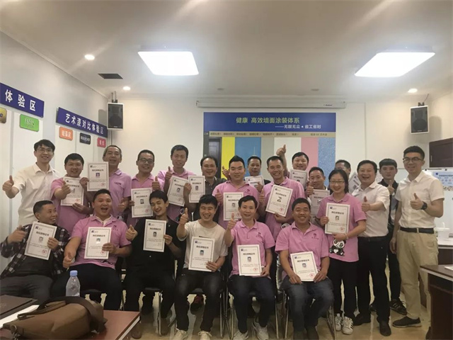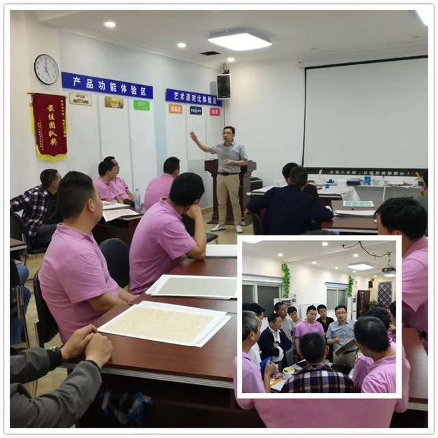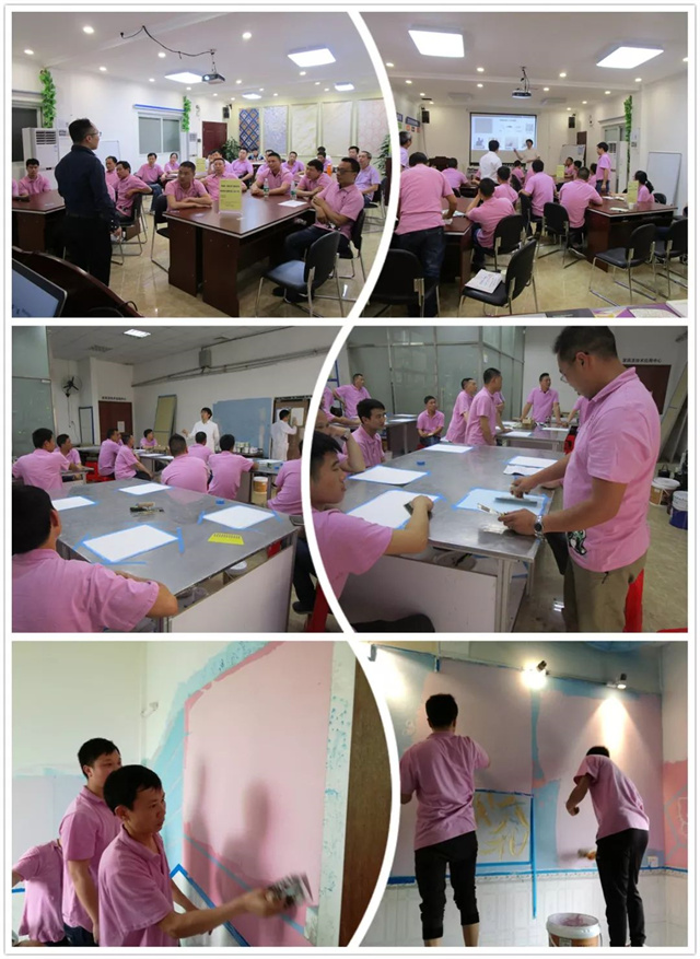 現(xiàn)今,嘉麗士藝術(shù)水漆還推出了“3+1盈利模式”,助力經(jīng)銷商迎戰(zhàn)市場(chǎng),而其中的“藝術(shù)漆盈利模式”更是站在了時(shí)代的風(fēng)口上,本次培訓(xùn)主要圍繞嘉麗士藝術(shù)漆展開探討,從產(chǎn)品的性能、樣板制作到上墻施工,均讓經(jīng)銷商們親身體驗(yàn),以求達(dá)到最好的培訓(xùn)效果。