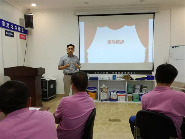隨后,嘉麗士事業(yè)部總經(jīng)理佘保明給在座經(jīng)銷商作了開訓(xùn)演講,鼓勵大家用心學(xué)習(xí),由賣產(chǎn)品向賣服務(wù)、賣效果的轉(zhuǎn)型,再轉(zhuǎn)型向涂裝公司的發(fā)展,以藝術(shù)涂料的推廣帶動高端產(chǎn)品的銷售;以涂裝公司的運作推廣帶動主輔材的銷售,突破賣產(chǎn)品的傳統(tǒng)銷售模式轉(zhuǎn)型為按平方贏利銷售模式!