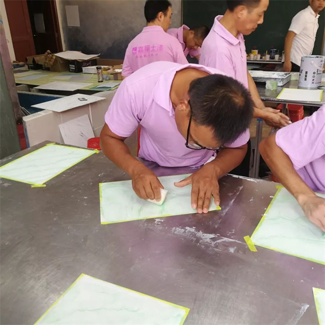 實操過程更是令學(xué)員受益匪淺,老師把施工要點、使用工具和施工手法等詳細講解,一邊講解一邊示范。在老師們富于耐心又不失幽默詼諧的教學(xué)風(fēng)格的帶動下,整個藝術(shù)漆培訓(xùn)課堂氣氛輕松活躍,一下子就點燃了學(xué)員們學(xué)習(xí)的熱情。