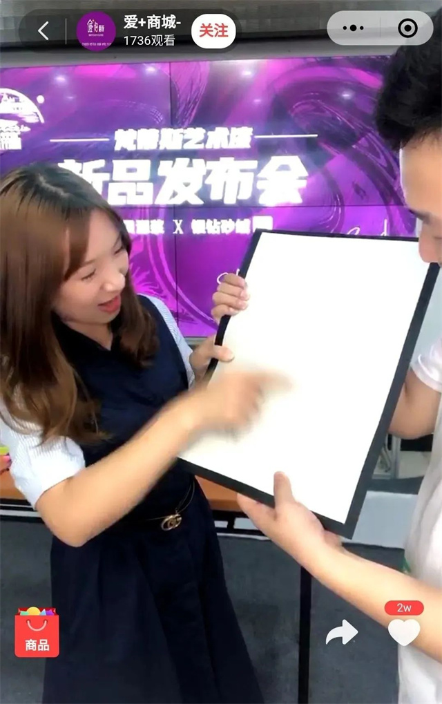 5月28日晚19:00,通過在線上發(fā)布會,正式向觀眾推出“海貝源漿藝術(shù)漆”、“銀鉆砂絨藝術(shù)漆”等兩款新品。不出所料,新產(chǎn)品剛推出便獲得不錯的反響,僅僅一個小時便吸引了近2000人觀看,秒殺活動成交150余單,結(jié)果大振人心!
