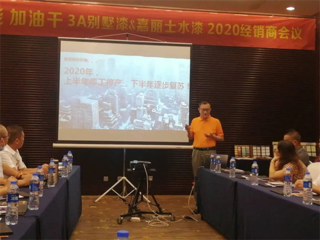 會議上,任總首先對當前涂料市場狀況進行交流與分析。眾所周知,開年的一場疫情,對整個社會都產(chǎn)生了極大的影響。目前疫情雖已進入穩(wěn)定階段,但開年所帶來的影響仍然并將長期存在。因此,任德忠總裁針對疫情過后涂料經(jīng)銷商如何尋求出路快速復(fù)蘇,進行了經(jīng)驗分享,探討其中可能的出路。