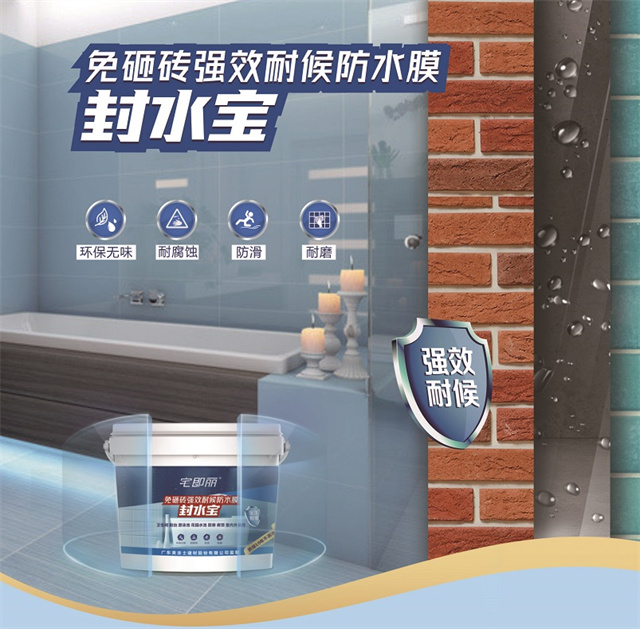 產(chǎn)品耐候性強(qiáng),室內(nèi)外通用宅即麗封水寶免砸磚耐候防水膜,避免了傳統(tǒng)防水修繕需要從底到面撬開(kāi)從頭再來(lái)的“大動(dòng)干戈”的麻煩,且一體成型無(wú)遺漏,拉伸彈性強(qiáng),強(qiáng)效耐候無(wú)懼紫外線,可以用于戶外陽(yáng)臺(tái)、屋頂與外墻防水,施工簡(jiǎn)便不妨礙業(yè)主正常居住等特點(diǎn),大大彌補(bǔ)了防水修繕市場(chǎng)的空白。