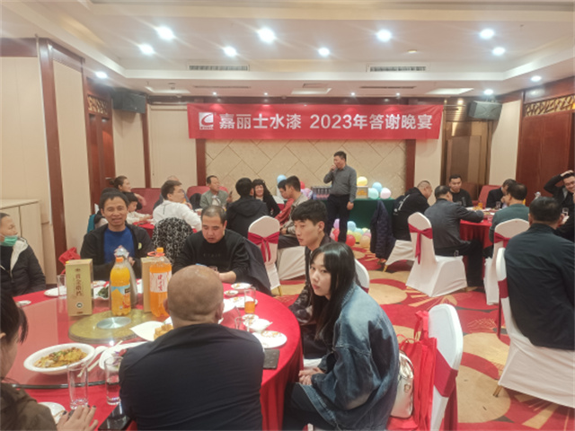 3月20日晚19點(diǎn),戰(zhàn)略會(huì)議在溫馨的答謝晚宴中拉開帷幕。晚宴期間,為答謝各位經(jīng)銷商家人們多年來的支持與信賴及拔沉與會(huì)之舉,設(shè)置了多輪踩氣球贏禮品活動(dòng),同時(shí)公布了嘉麗士水漆2022年度優(yōu)秀經(jīng)銷商、最佳經(jīng)銷商獎(jiǎng)項(xiàng),并為獲獎(jiǎng)單位舉行了隆重的頒獎(jiǎng)儀式。