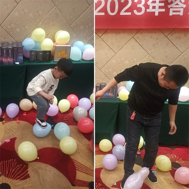 現(xiàn)場經(jīng)銷商及其家屬在參與踩氣球贏禮品活動(dòng)