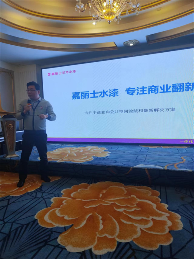 美涂士集團(tuán)嘉麗士事業(yè)部總經(jīng)理焦坤朋先生,美涂士集團(tuán)嘉麗士商裝項(xiàng)目負(fù)責(zé)人黃國義先生,美涂士集團(tuán)嘉麗士山西區(qū)域總監(jiān)劉祥先生親臨現(xiàn)場,為全體參會(huì)人員帶來嘉麗士水漆2023年的品牌定位、營銷策略和發(fā)展規(guī)劃。