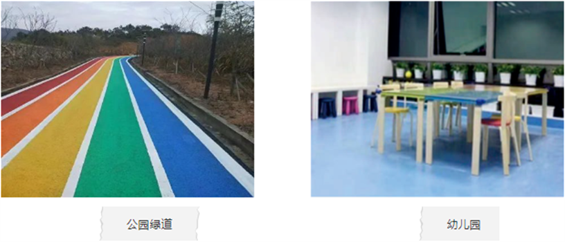 單組份丙烯酸地坪漆適用于室內(nèi)外環(huán)境,如:公園綠道、屋面平臺(tái)、球場(chǎng)、兒童樂(lè)園、幼兒園活動(dòng)場(chǎng)、人行通道、社區(qū)游樂(lè)場(chǎng)等地面色彩裝飾與翻新保護(hù)。