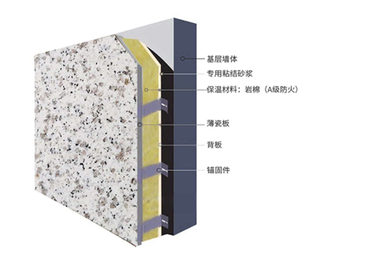 薄瓷類保溫裝飾一體板與無(wú)機(jī)板類一體板的區(qū)別是薄瓷一體板的飾面板是采用一體化燒制而成的薄瓷磚,其復(fù)合保溫材料的類型和復(fù)合工藝與無(wú)機(jī)板類保溫裝飾一體板基本一致。常用仿石飾面類型包括仿石荔枝面、平面啞光面、平面高光釉面、平面拋光面,仿石效果可達(dá)98%以上;亦可根據(jù)客戶需求定制仿磚薄瓷及其他特殊飾面類型。 美涂士可提供非常規(guī)厚度薄瓷飾面定制服務(wù)。