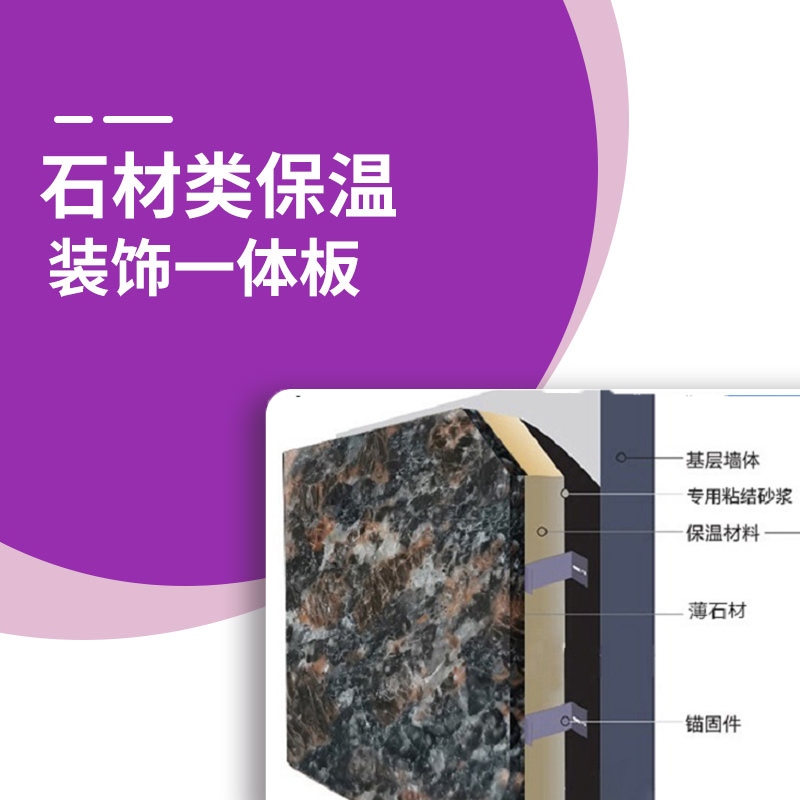 薄石材保溫裝飾一體板是采用天然石材與保溫材料復(fù)合而成的保溫裝飾一體板,其裝飾效果更高檔、華麗。相比干掛石材,其在達(dá)到同等裝飾效果的情況下,造價(jià)成本更低、施工更便捷。常用薄石材類(lèi)型有卡麥、皇室棕、芝麻白等。